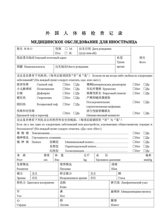 Медицинская справка для поездки в Китай – это официальный документ, который выдается после прохождения комиссии, в целях подтверждения отсутствия опасных инфекционных заболеваний. В Китае действительна только установленная форма данного документа, заполненного на китайском языке. Однако, далеко не в каждом российском мед учреждении могут выдать такую справку, отчего выезжающие на работу или учебу люди сталкиваются с определенными трудностями.